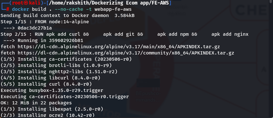 3) Open terminal from the folder where the updated Dokerfile is present and create Docker image for FE