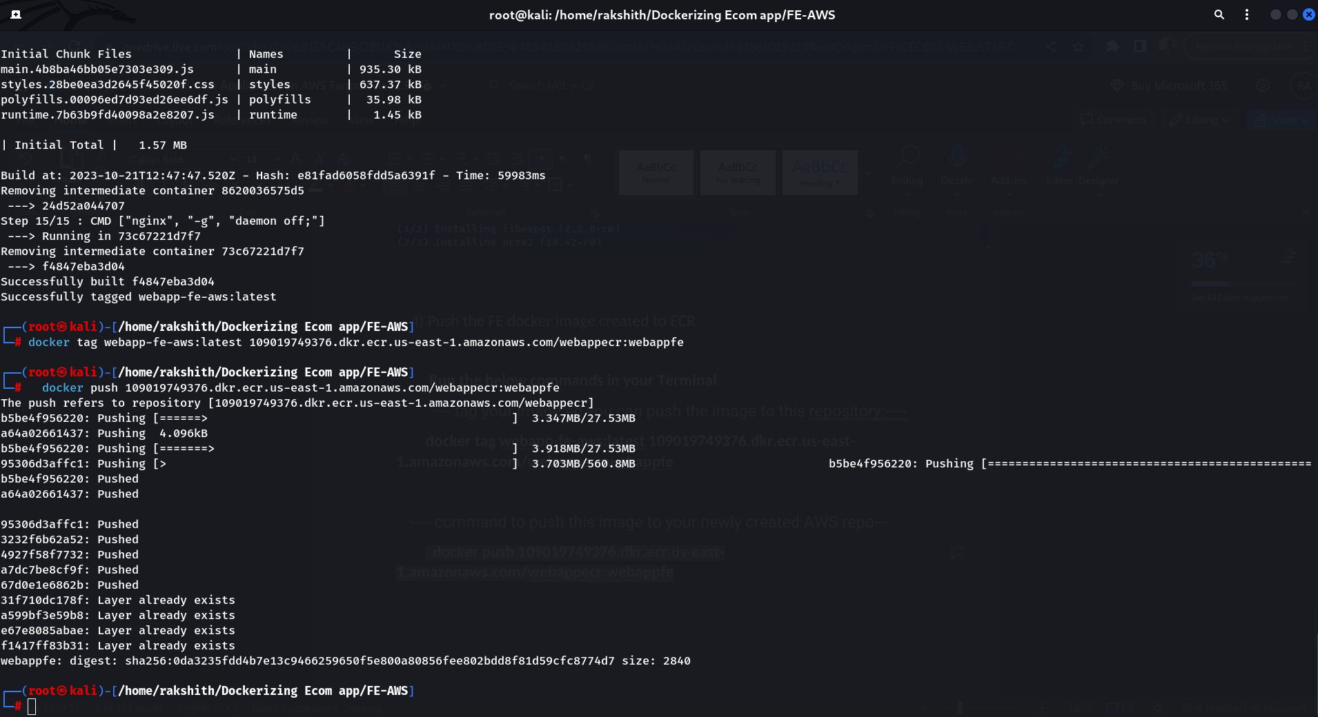 4) Push the FE docker image created to ECR