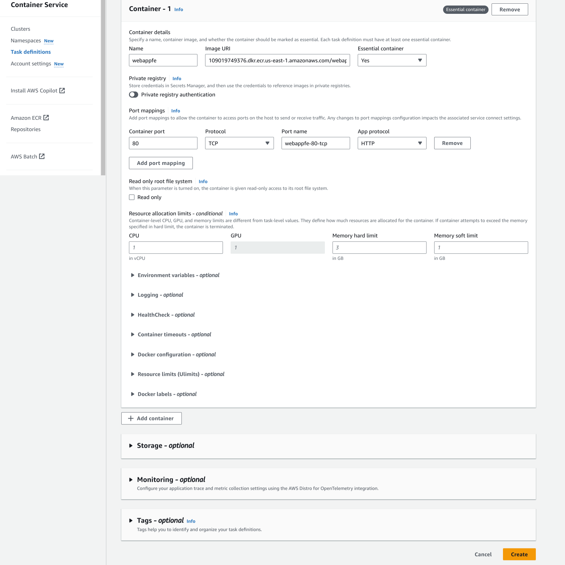 Step 8: Create an ECS task definitions for Frontend