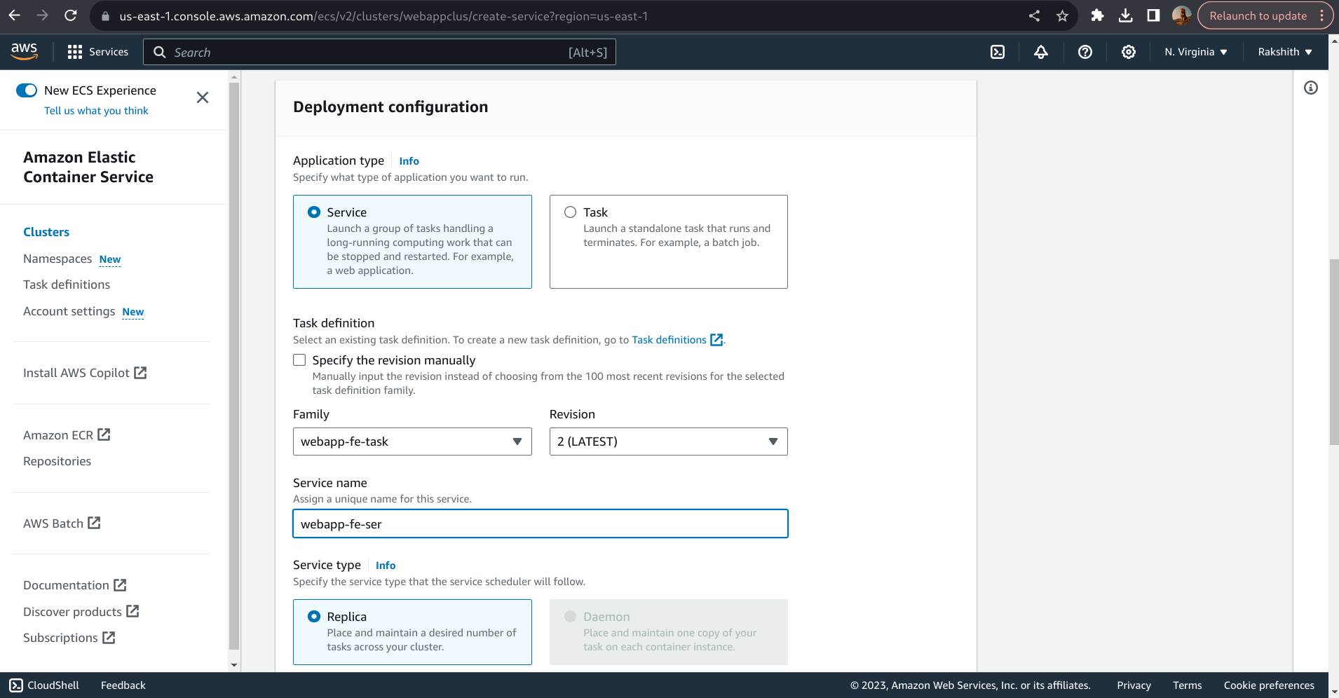 Navigate to >> Clusters >> webappclus >> Services >> Create