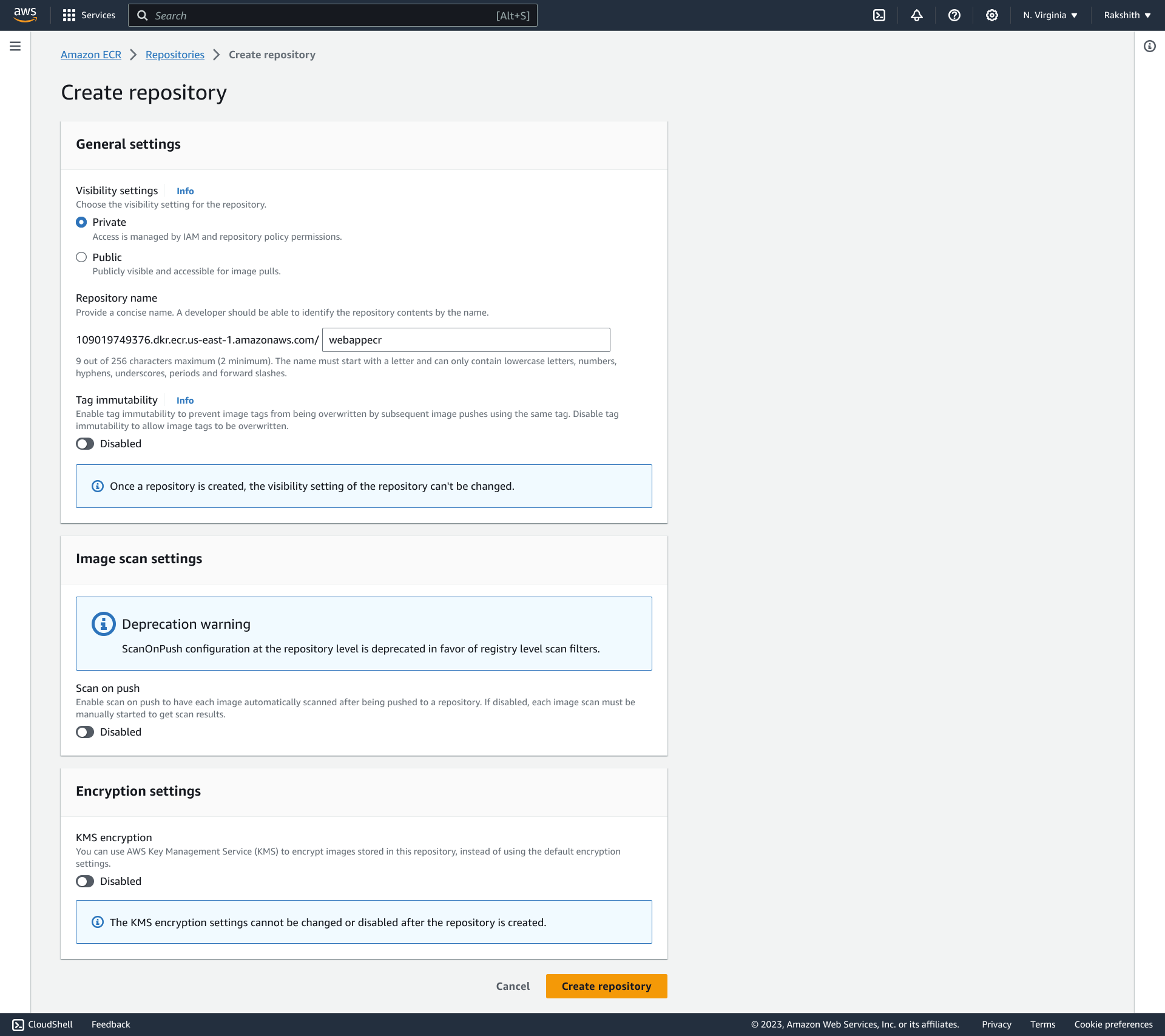 Step 3: Create repo in ECR