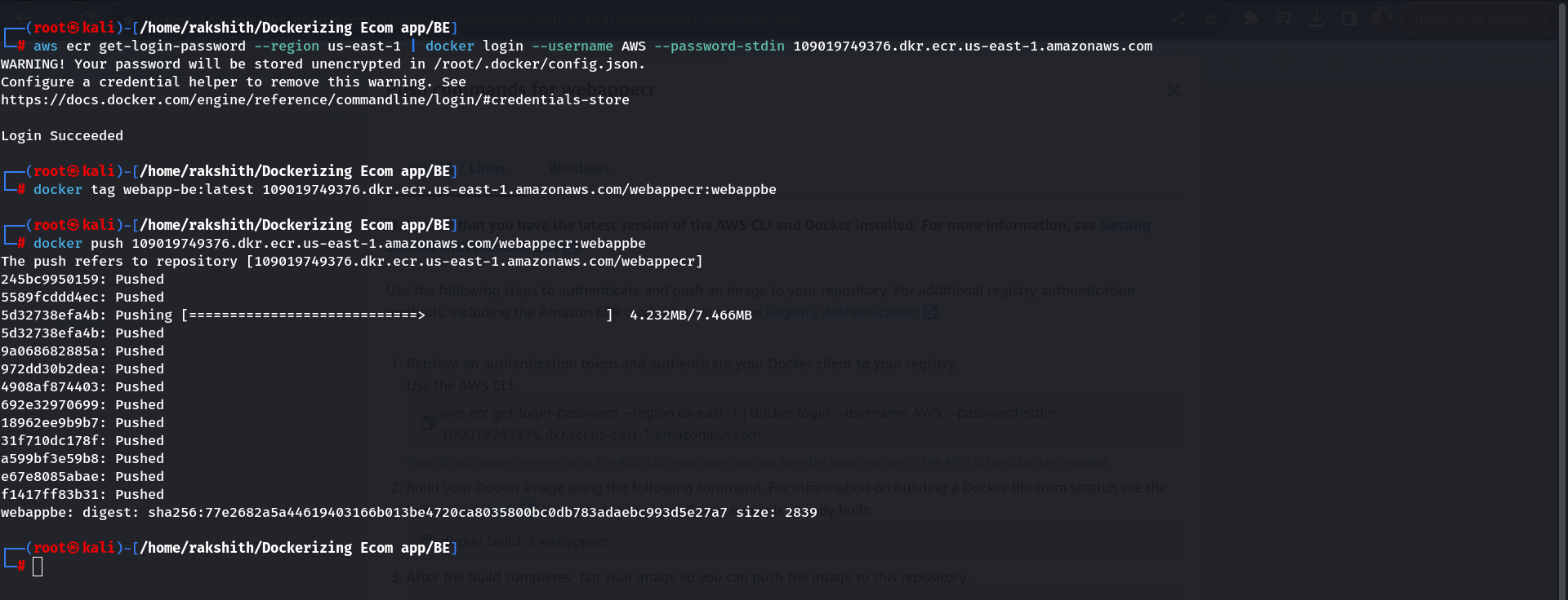 Step 4: Create Backend docker images from Dockerfile and push to ECR repo