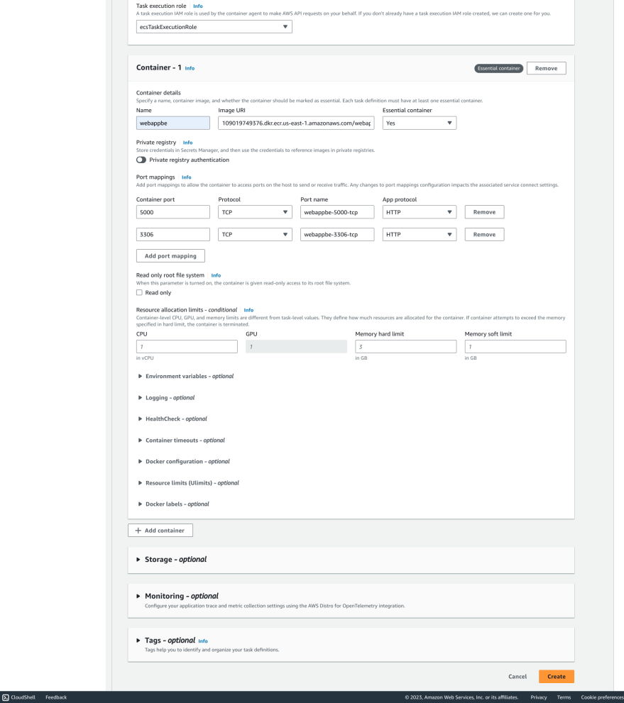 Step 5: Create an ECS task definitions for Backend