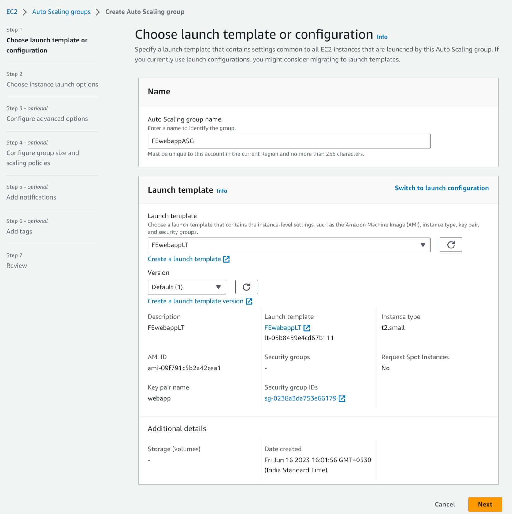 Step-7: Create a launch template, Autoscaling group, and load balancer for the Frontend.