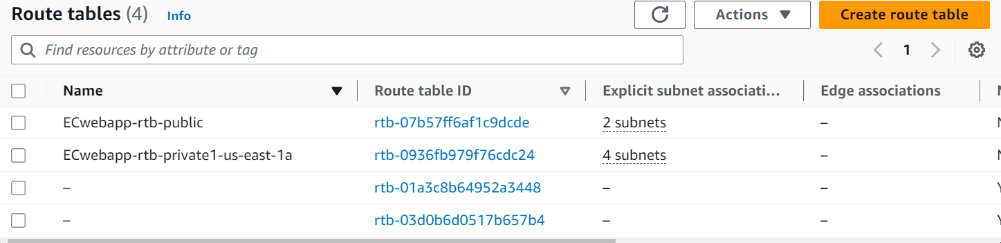The wizard will create a route table for each private subnet. This is not needed in our case, and we can modify one of the private route tables to include all of our private subnets for ease of management.